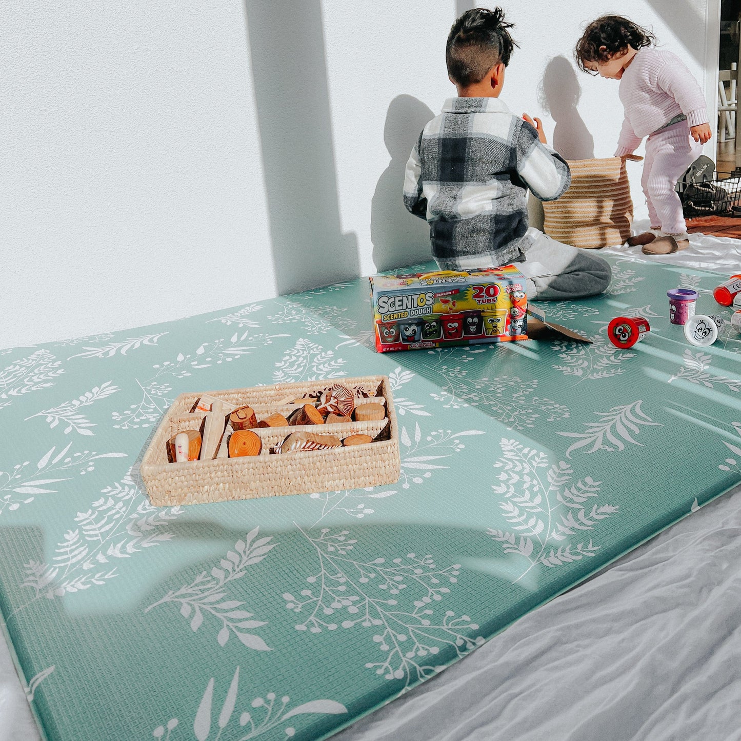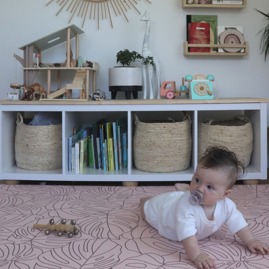 Our waterproof padded Play Mats come in a variety of colours and prints to complement your home. Each one has a different colour or print on the reverse, so you can simply flip your play mat over to fit your vibe.